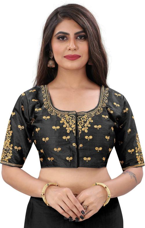 Jay Pal Women Black Embriodered Art Silk U-Neck Blouse