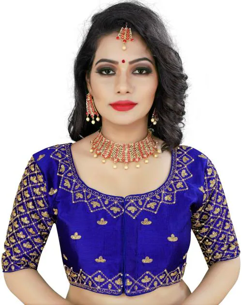 Jay Pal Women Blue Art Silk Round Neck Blouse