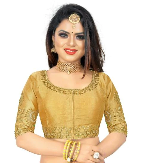 Jay Pal Women Gold Art Silk Round Neck Blouse