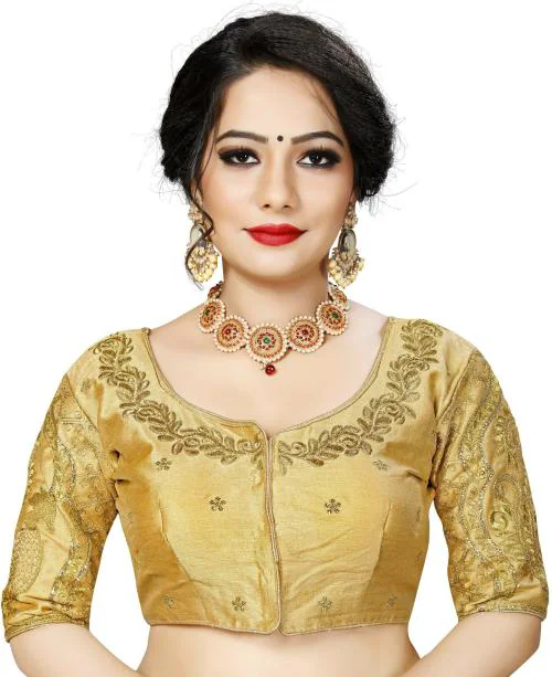 Jay Pal Women Gold Art Silk Round Neck Blouse