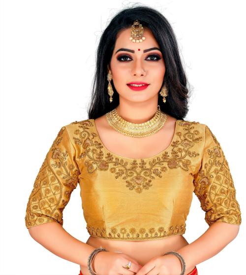 Jay Pal Women Gold Embriodered Art Silk Round Neck Blouse (38)