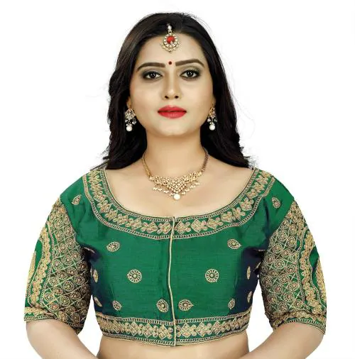 Jay Pal Women Green Cotton Silk U-Neck Blouse