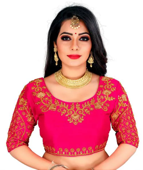 Jay Pal Women Pink Embriodered Art Silk Boat Neck Blouse (38)