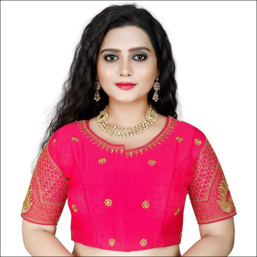 Jay Pal Women Pink Embriodered Poly Silk Round Neck Blouse