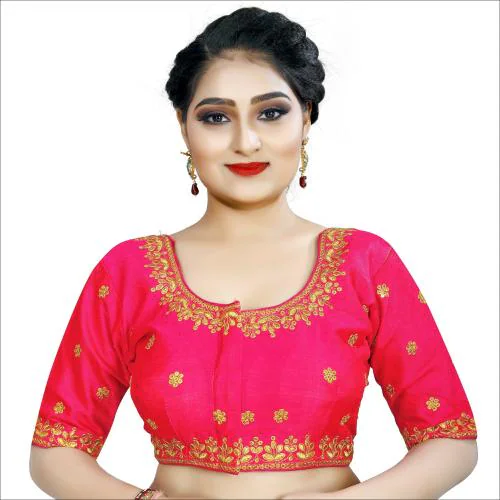 Jay Pal Women Pink Embriodered Poly Silk Round Neck Blouse