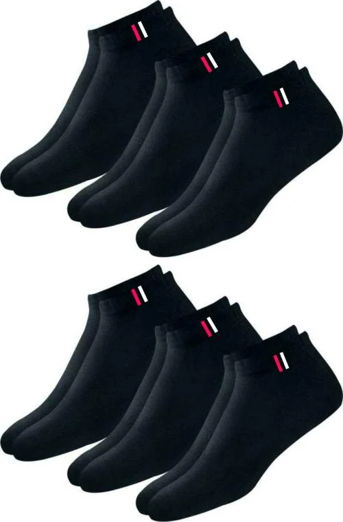 Jemox Men And Women Black Cotton And Polyster Low Cut Socks - Free (Pack Of 6)