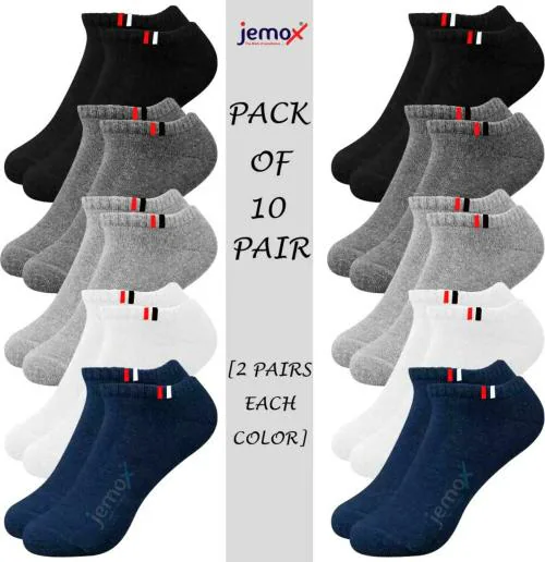 Jemox Men And Women Multicolor Cotton And Polyster Ankle Length Socks - Free (Pack Of 10)