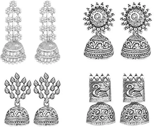 Jewelmaze Alloy Gold-Plated White Drops And Danglers Earrings (Women) (Pair Of 4)