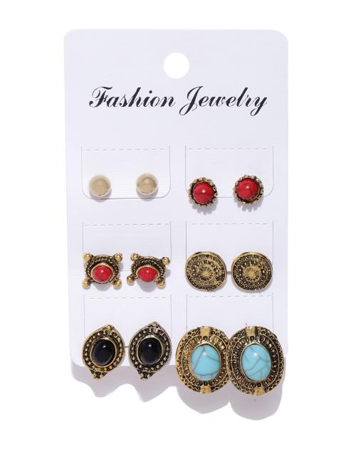 Jewels Galaxy Trendy AD Oxidized Gold Amazing 6 Pair of Stud Earrings For Women/Girls
