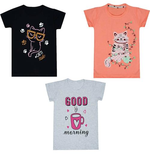 Jocker Girls Multicolor Cotton Pack Of 3 T-Shirt (4 Years-5 Years)
