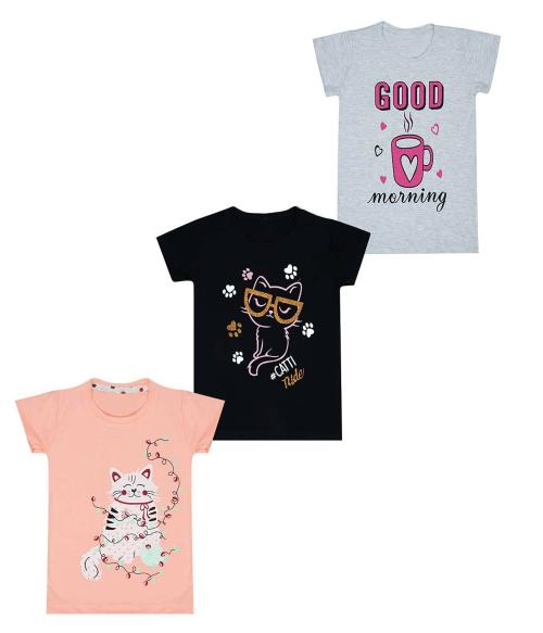 Jocker Girls Multicolor Cotton Pack Of 3 T-Shirt (6 Years-7 Years)