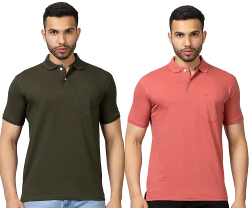 John Brooks Men Regular Fit 100% Cotton Polo Tshirt Pack of 2 - Olive & Carrot