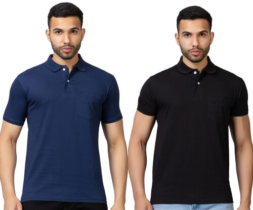 John Brooks Men Regular Fit Solid Polo Tshirts For Men Pack of 2 - Denim Blue & Black