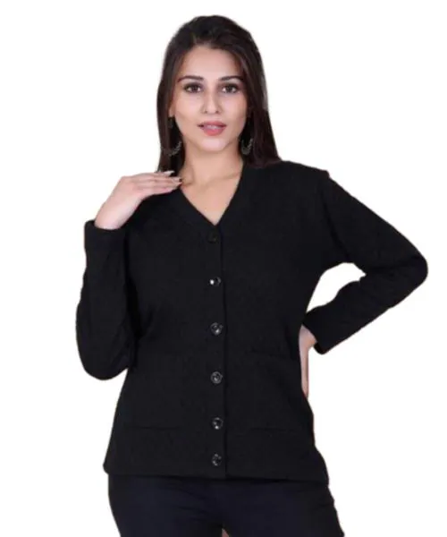 Jorden4u Women Black Self Design Acrylic V Neck Sweater