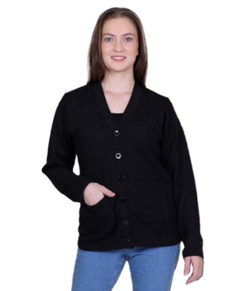 Jorden4u Women Black Self Design Acrylic V Neck Sweater