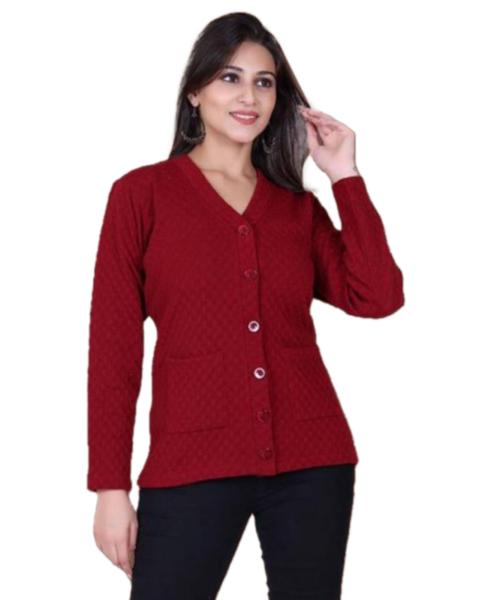 Jorden4u Women Maroon Self Design Acrylic V Neck Sweater