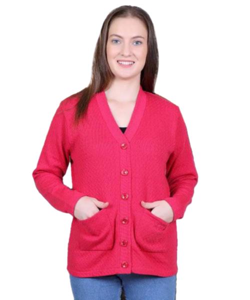 Jorden4u Women Pink Self Design Acrylic V Neck Sweater