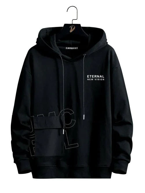 Jump Cuts Mens Printed Hooded Neck Full Sleeve Black Cotton Slim Fit T-Shirt