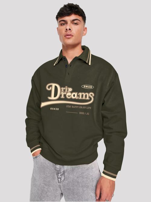 Jump Cuts Mens Printed Polo Neck Full Sleeve Olive Oversized Fit Cotton Blend Polo T-Shirt