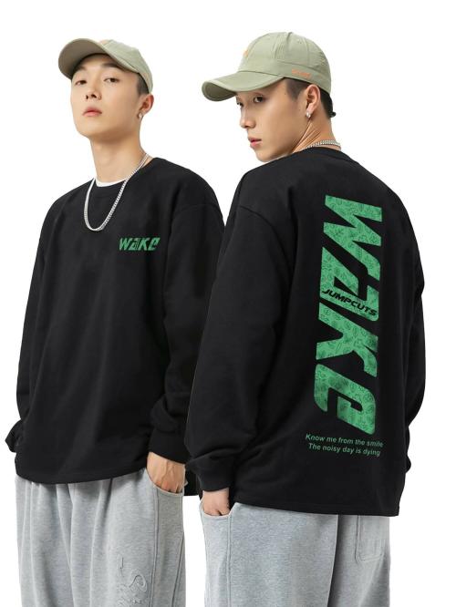 Jump Cuts Mens Printed Round Neck Full Sleeve Black, Green Cotton Blend Boxy Fit T-Shirt
