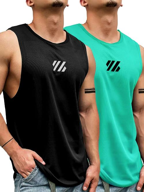 Jump Cuts Mens Printed Sleeveless Polyester Multicolor Slim Fit Vest