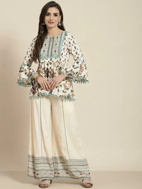 Juniper Women Ivory Rayon Printed Peplum Clothing Set