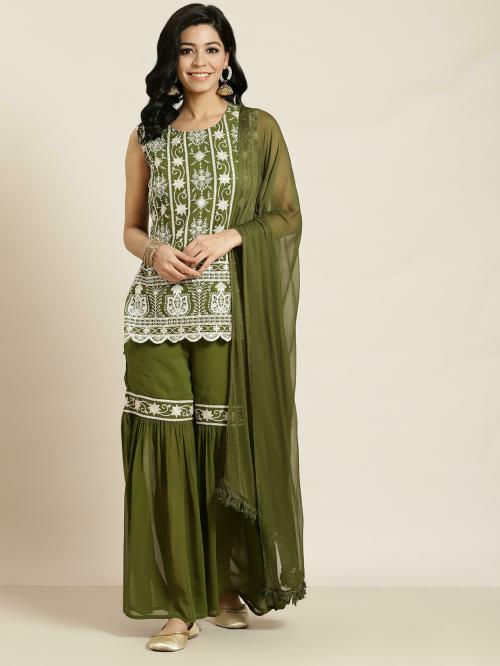 Juniper Women Mehandigreen Georgette Embroidered Straight Kurta Sets