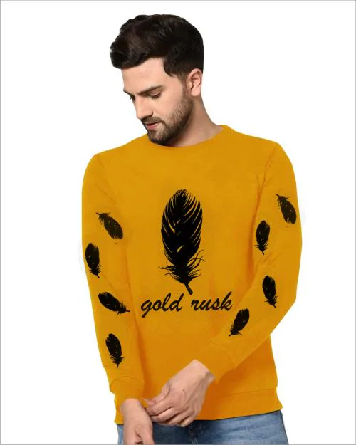 JUSTIFY Men Printed, Graphic Print Round Neck Yellow T-Shirt-S