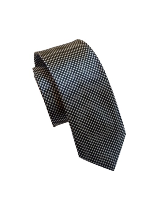 Justin dustin Men's Black and White Micro Checkered Narrow Slim Printed Satin Tie