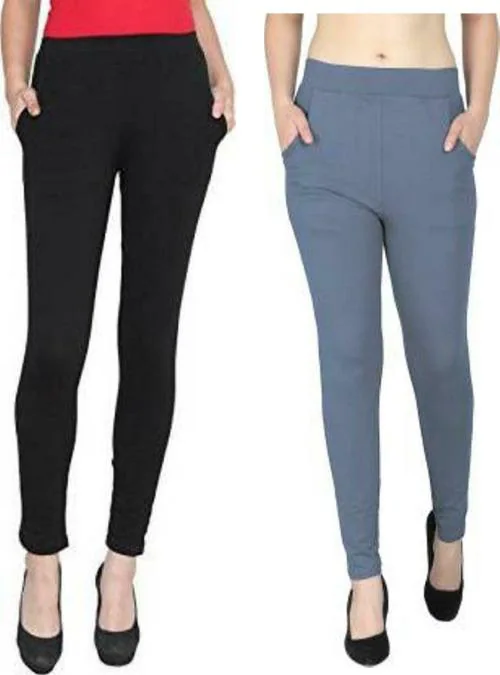Kaff Women Multicolor Solid Cotton Lycra Blend Pack of 2 Leggings (XL)