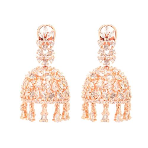Kairangi by Yellow Chimes Rose Gold Gold Plated Metal American Diamond Studded Jhumka for Women and Girls