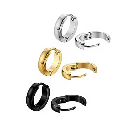 Kairangi By Yellow Chimes Stainless Steel Fashion Hoop Earrings Set For Men And Boys - 8 Centimeters (Pair Of 3)