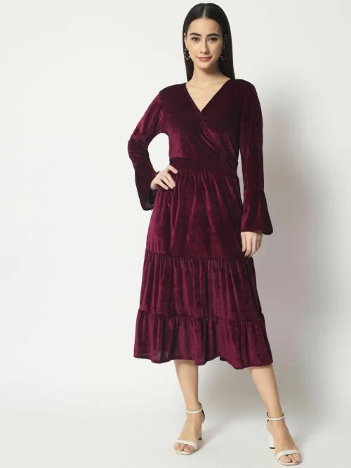 Kannan V NECK VELVET DRESS FOR WOMEN WINTER WEAR.