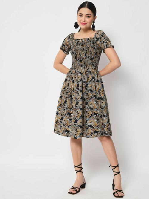 kannan women printed ribbed short midi dress for women with black leather belt on waist