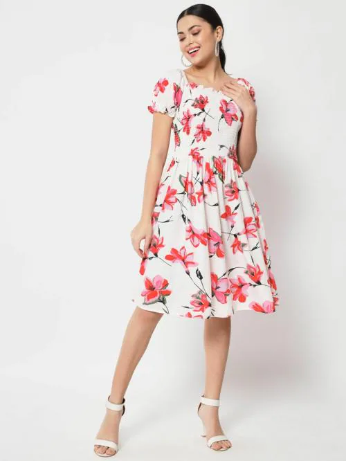 kannan women printed ribbed short midi dress for women with black leather belt on waist