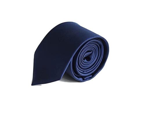 KARAVASTRA Men's Slim Skinny Solid Satin Plain Necktie, Indian Fabric Plain Satin Tie (Blue)