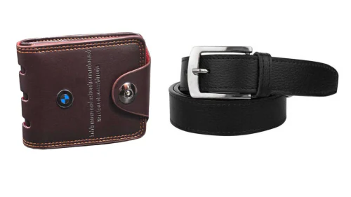 Kastner Men Artificial Leather Belt And Wallet Combo