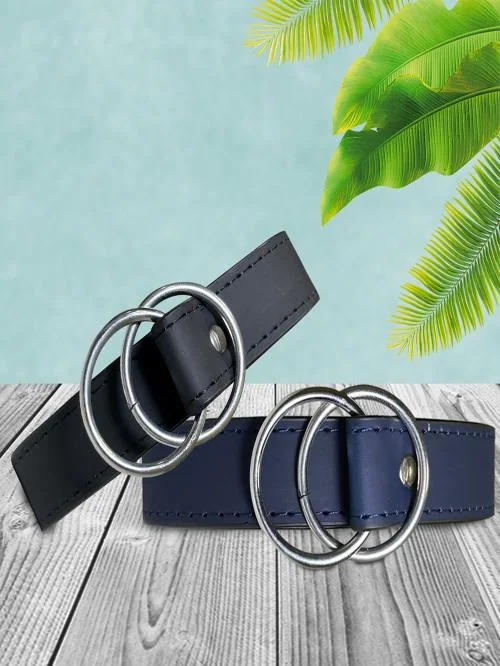 Kastner Women Solid Black and Blue Belt(PACK OF 2)