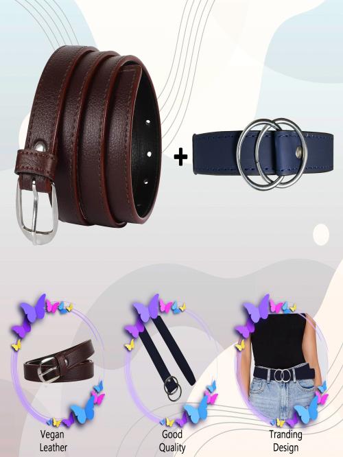 Kastner Women Solid Black and Blue Belt(PACK OF 2)