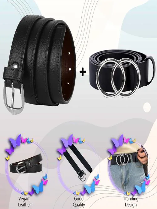 Kastner Women Solid Black and Blue Belt(PACK OF 2)