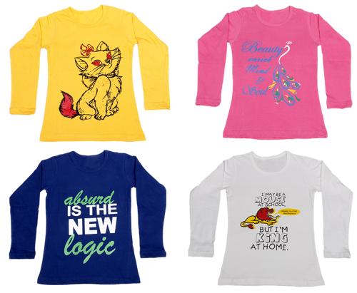 KAYU Girls Cotton Full Sleeves Chest Printed T-Shirt (Pack of 4) Multicolor