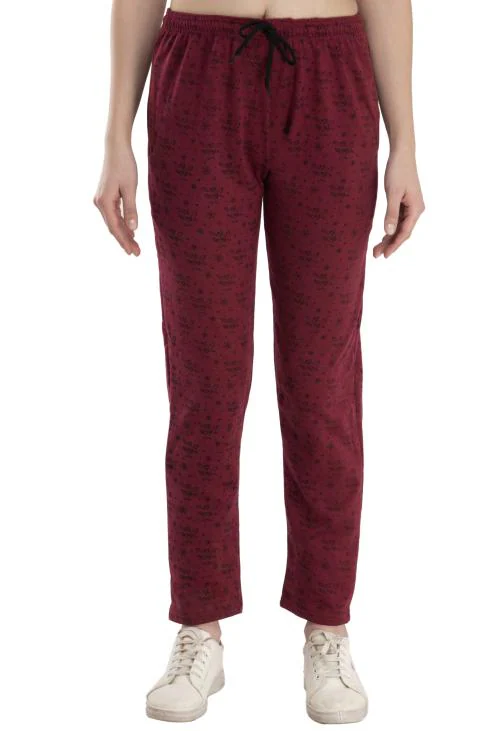 KAYU Women Fleece Warm Printed Lower/Trackpants for Winters (Pack of 1) Maroon