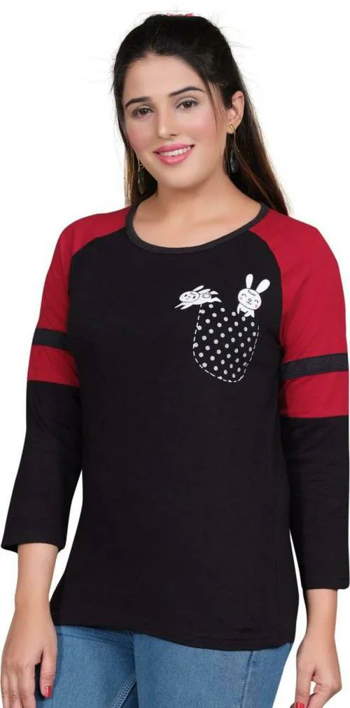 KEESOR Girls Black Graphic Cotton Blend T-Shirt - L