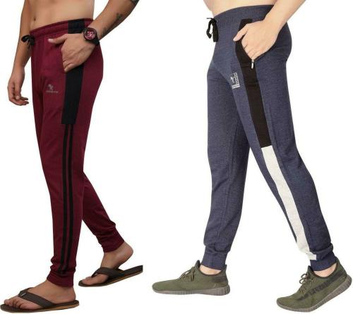 KEESOR Men Dark Blue and Maroon Striped Cotton Blend Track Pants - 32 (Pack of 2)