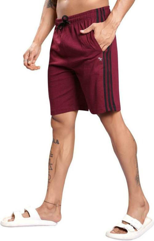 KEESOR Men Maroon Colorblock Cotton Blend Bermuda Shorts - 36