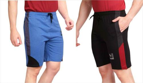 KEESOR Men Multicolor Solid Cotton Blend Basic Shorts - XL (Pack of 2)