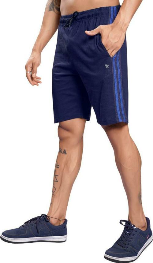 KEESOR Men Navy Colorblock Cotton Blend Bermuda Shorts - 32