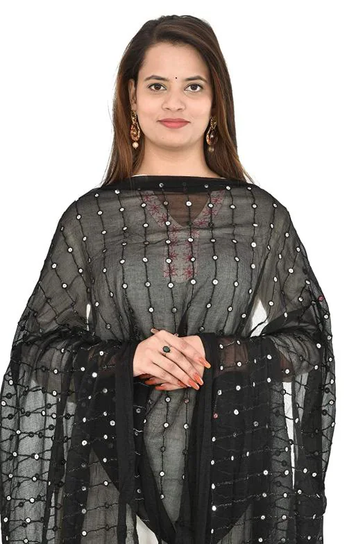Kemza Women's Mirror Chiffon Dupatta (Black) with Embroidered Work