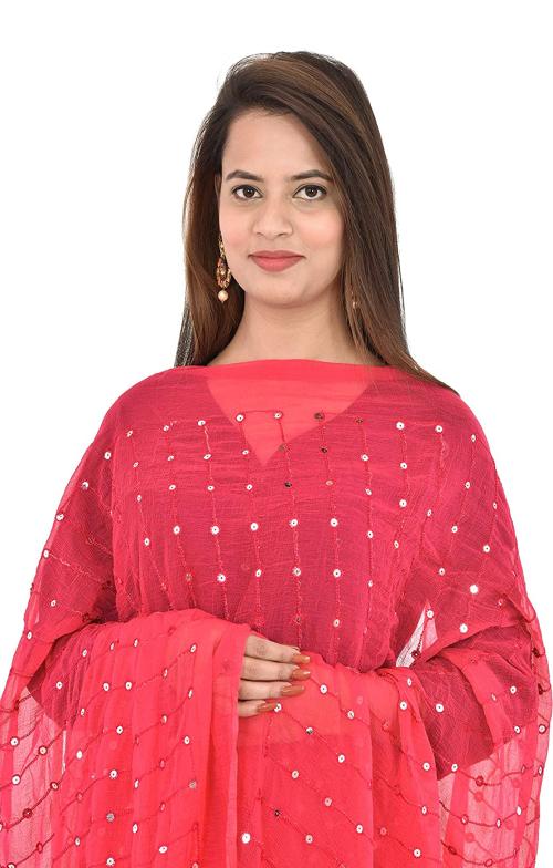 Kemza Women's Mirror Chiffon Dupatta (Pink) with Embroidered Work