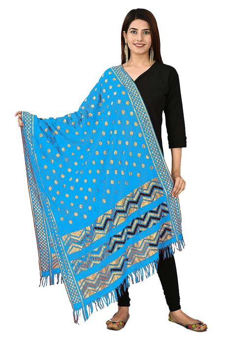 Kemza Women's Zari Worked Soft Silk Dupatta (Sky Blue) with Polka Dot Pattern